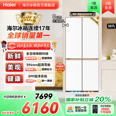 以旧换新补贴海尔麦浪507L十字双开零嵌入式冰箱家用一级能效官方