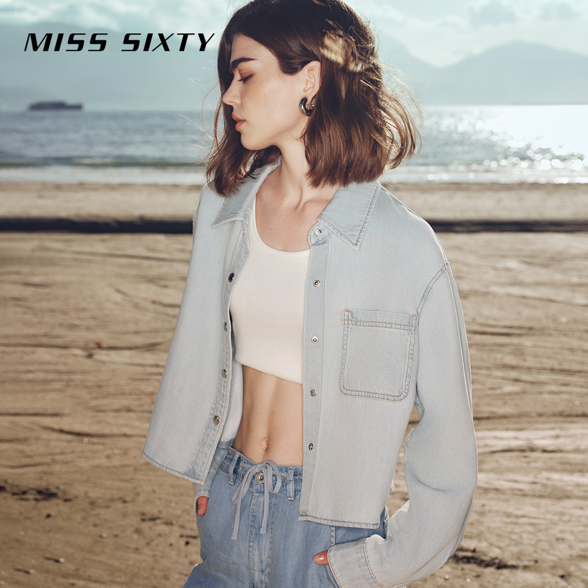 含天丝牛仔料 斯文翻领版型 单排按扣门襟