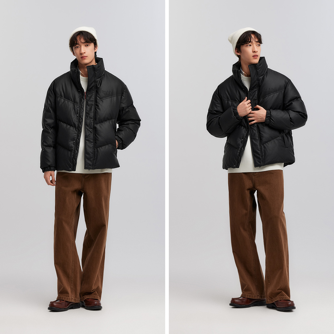 纯色立领羽绒服 PU仿皮衣 情侣外套