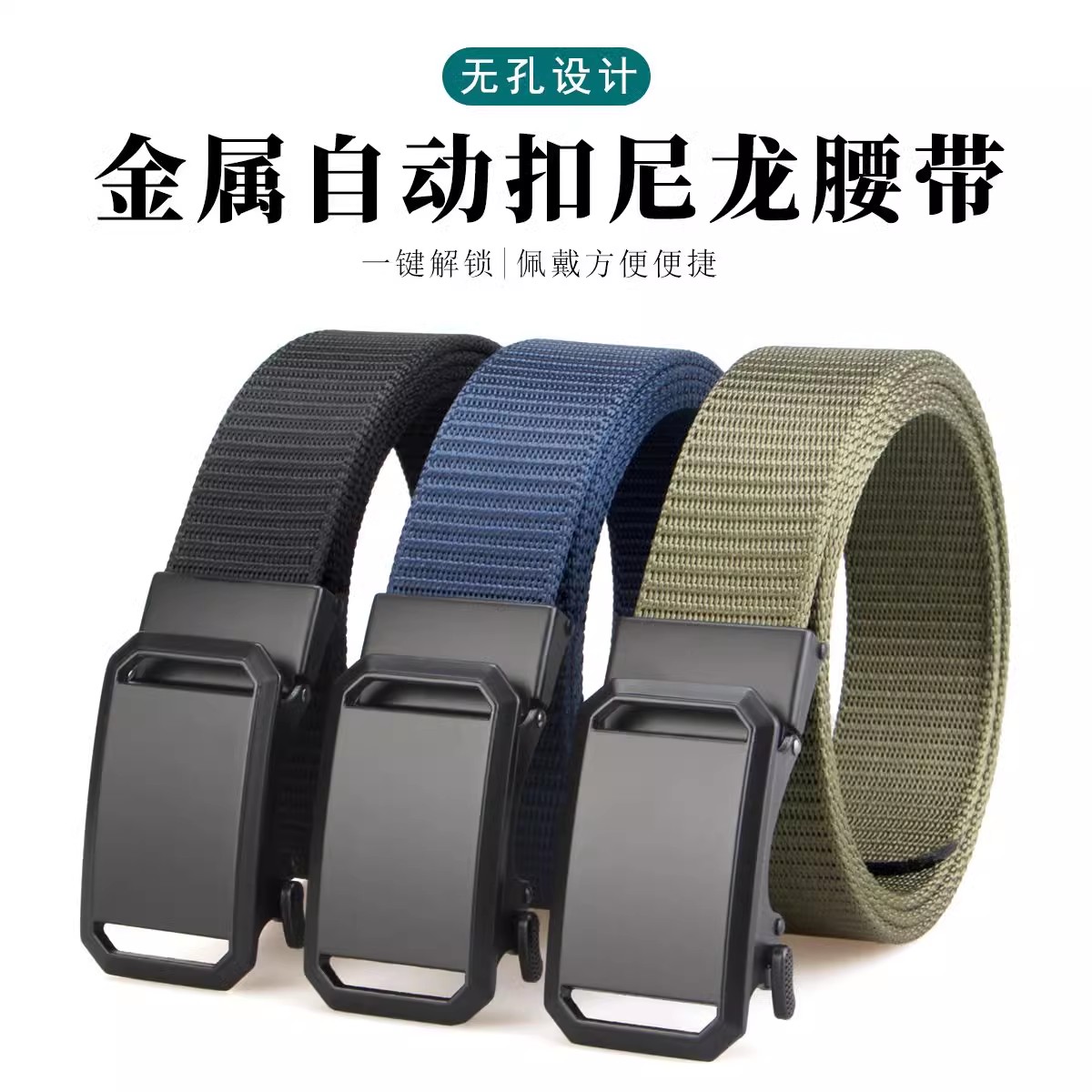2025新款男女士帆布尼龙腰带无孔自动扣皮带轻便超轻薄耐用学生
