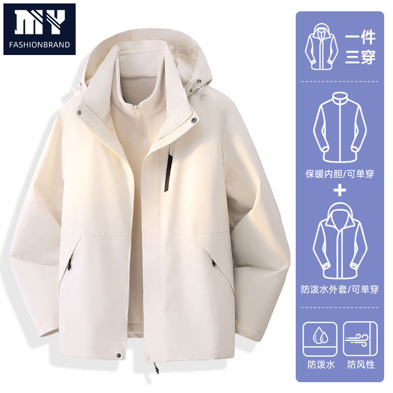 春秋季男女款三防夹克纯色简约户外工装情侣款宽松三合一外套