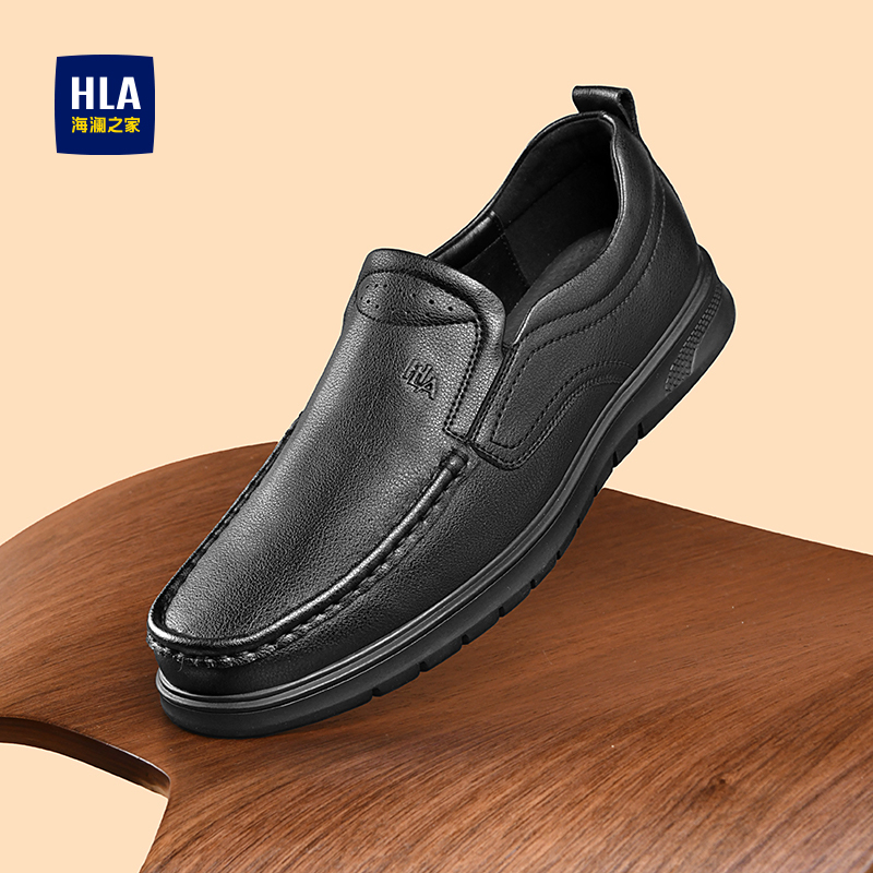 HLA/海澜之家男鞋新款秋季套脚软底休闲皮鞋结婚厚底加绒套脚舒适