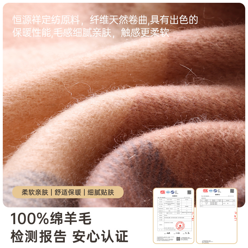 恒源祥纯羊毛格子围巾女款秋冬季披肩外搭加厚生日礼物送女生礼盒