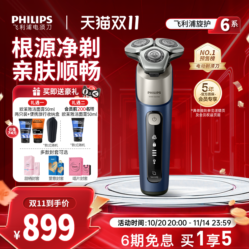 【政府补贴】飞利浦男士电动剃须刀云感6PRO刮胡须刀送礼物S6632
