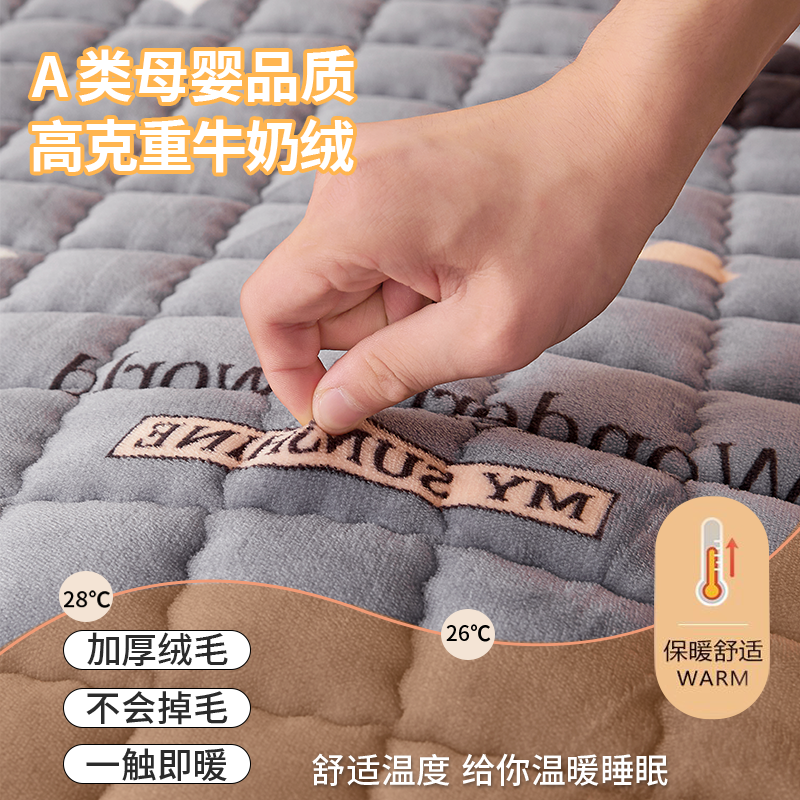 A类母婴级 牛奶绒夹棉床垫 加绒加密