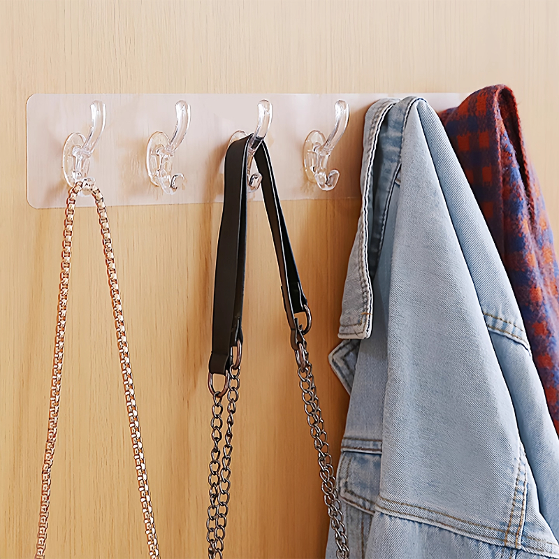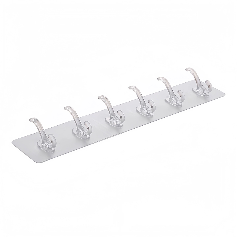 透明连排挂钩六连挂强力粘胶不掉落收纳壁挂无痕免打孔门后粘钩