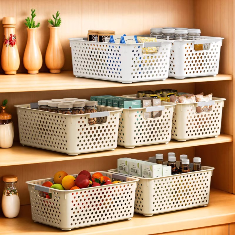零食杂物收纳筐玩具整理筐日式家用塑料大储物盒厨房橱柜篮子桌面