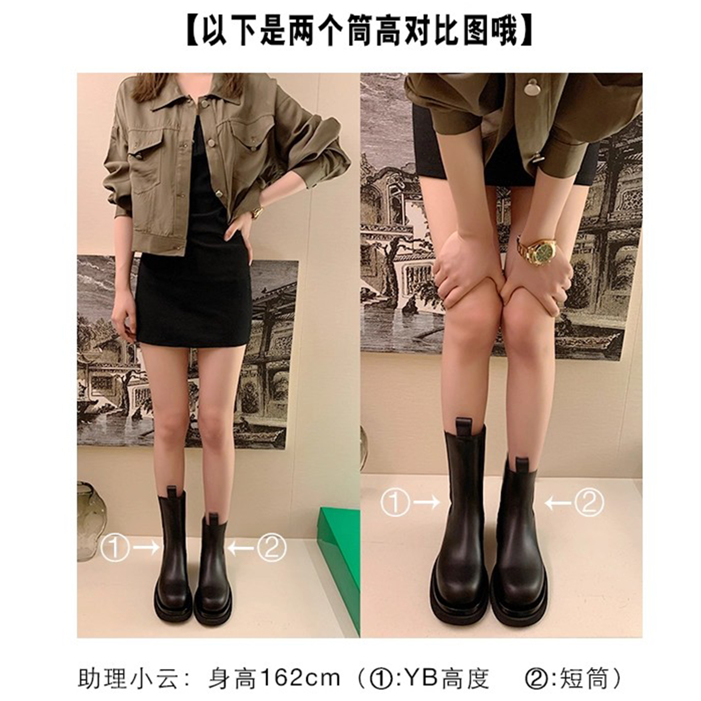 全牛皮~内增高马丁靴女秋冬加绒中筒烟筒靴厚底真皮切尔西短靴子