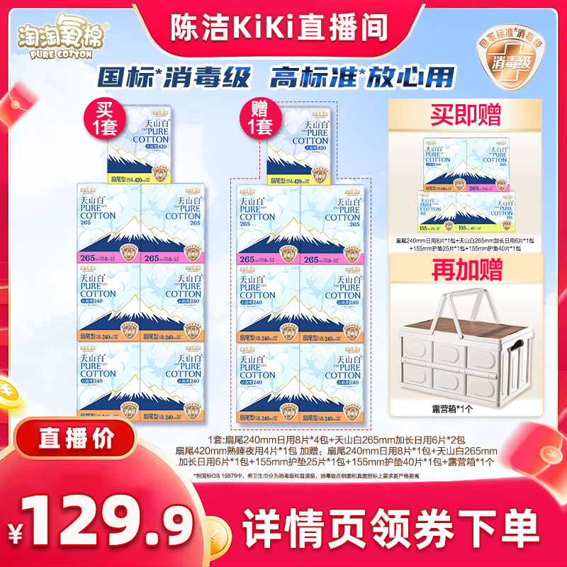 【抢现货!k姐双11】淘淘氧棉消毒级小扇尾纯棉卫生巾送露营箱