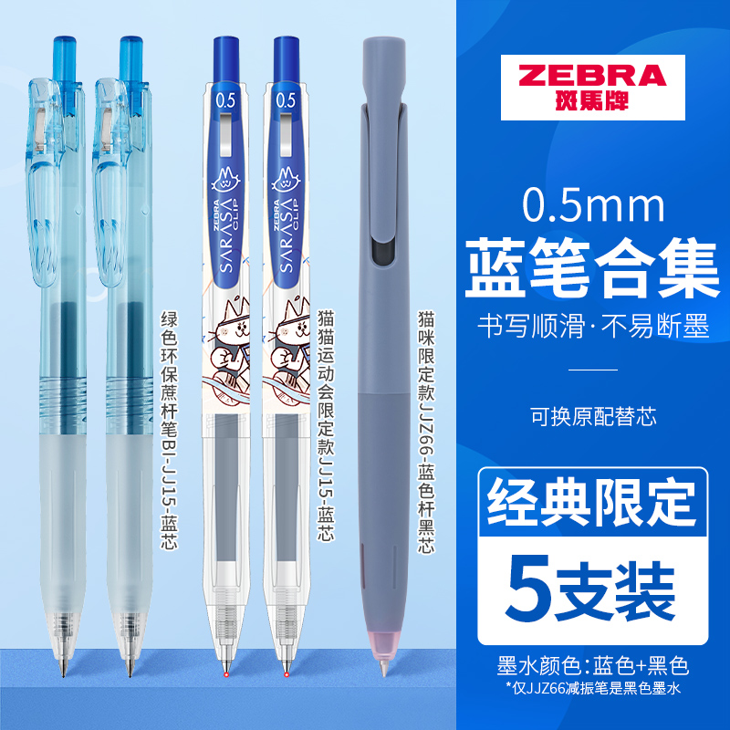【蓝色笔合集】日本zebra斑马旗舰店官网蓝色中性笔办公签字笔学生刷题圆珠笔蓝色按动笔