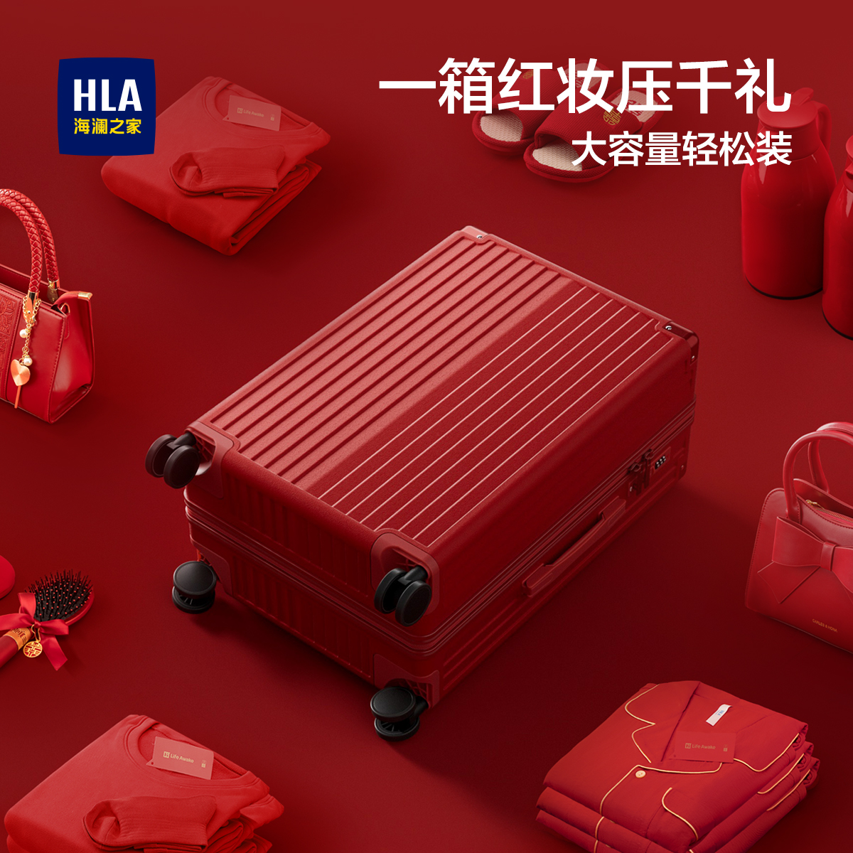 HLA/海澜之家大容量行李箱女婚嫁结婚24寸红色拉杆箱20寸陪嫁婚礼