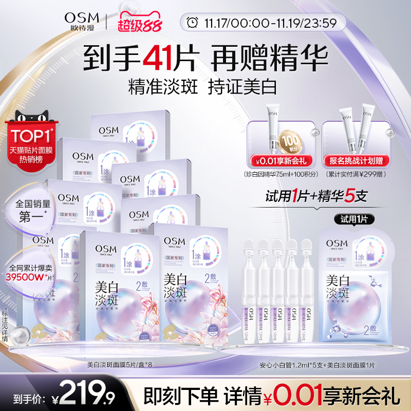 欧诗漫珍珠美白淡斑面膜烟酰胺提亮熬夜去黄暗沉
