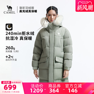 骆驼户外羽绒服冬季新款男女中长款加厚远红外拒水绒保暖面包服