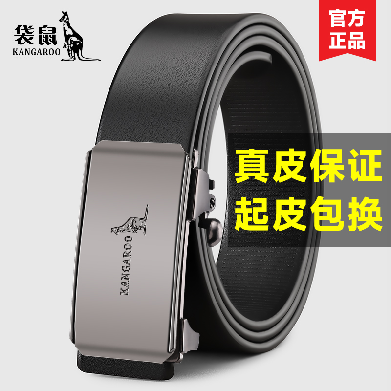 袋鼠皮带男款2025新款真皮自动扣裤带无牙内穿男士优质牛皮腰带男