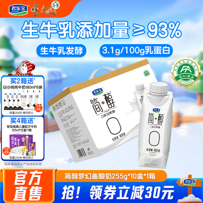君乐宝高端简醇酸奶0添加蔗糖酸牛奶常温酸奶255g*10盒礼盒装