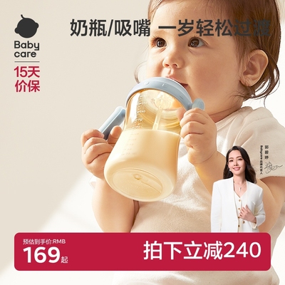 babycare吸管奶瓶ppsu吸管杯一岁以上直饮水杯宝宝学饮杯婴儿专用