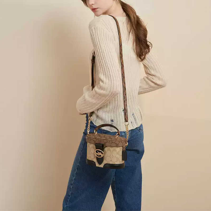 【自营】COACH/蔻驰奥莱款女士老花kay单肩斜挎手提盒子包CBQ35