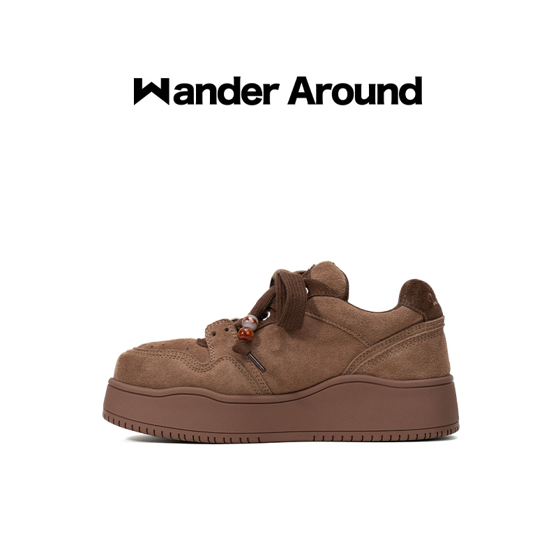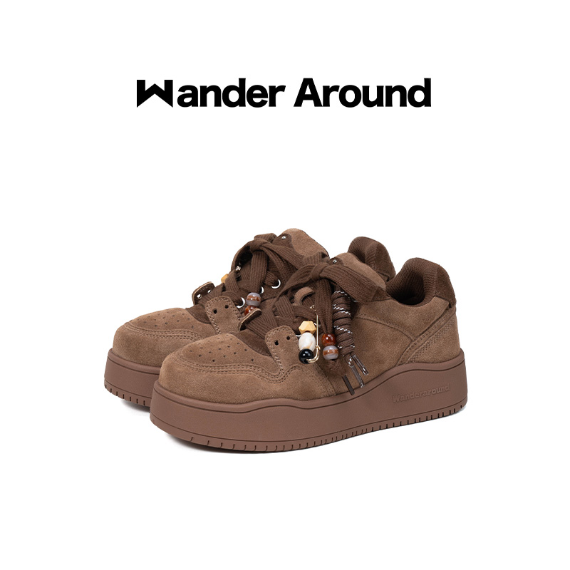Wander around2025年秋季新款复古棕色厚底增高休闲板鞋女
