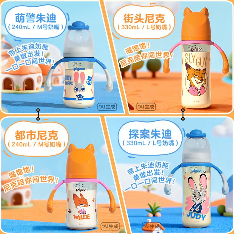 贝亲迪士尼疯狂动物城PPSU奶瓶大容量新生儿防胀气防呛官方旗舰店