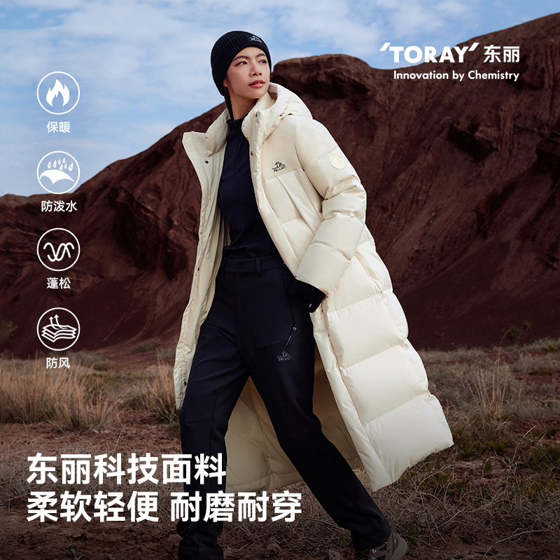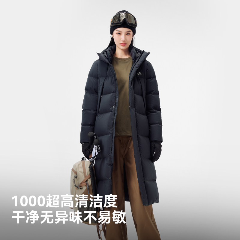 冬季新款鹅绒加长过膝连帽保暖登山服