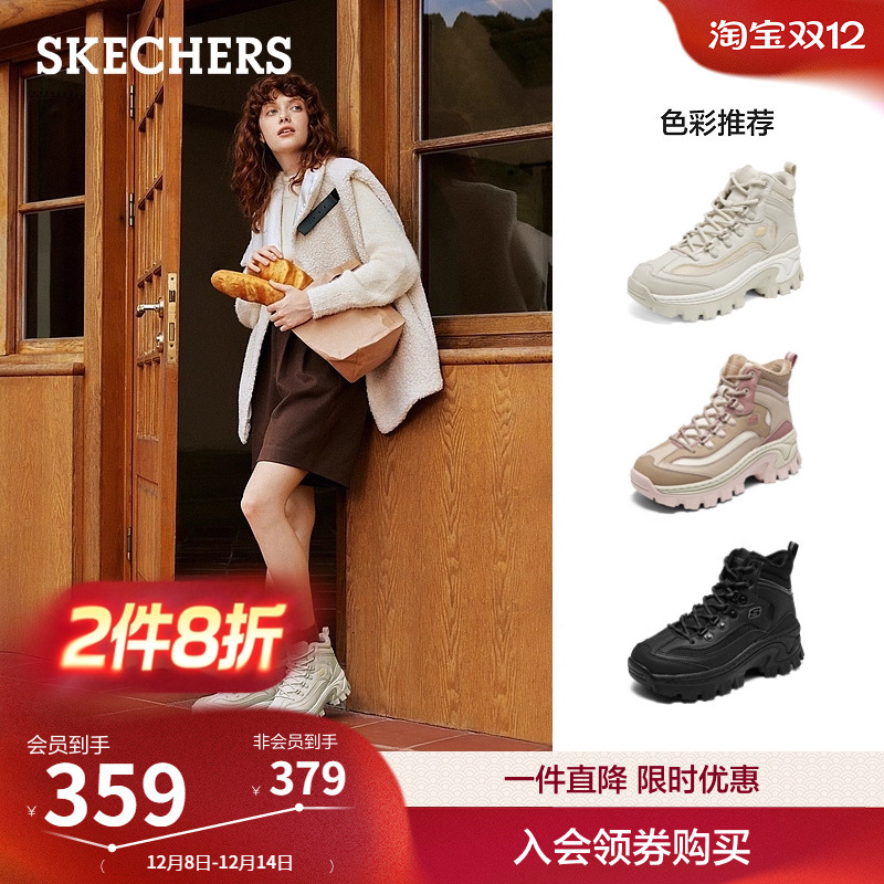 斯凯奇高帮蜜糕鞋|冬女鞋棉鞋加绒保暖休闲运动鞋厚底增高老爹鞋