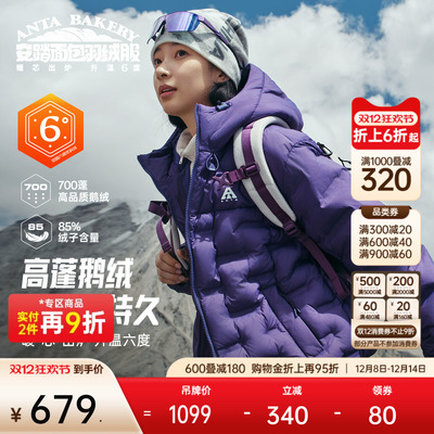 安踏面包羽绒服丨六度芯鹅绒服户外防风外套女士冬季加厚保暖夹克