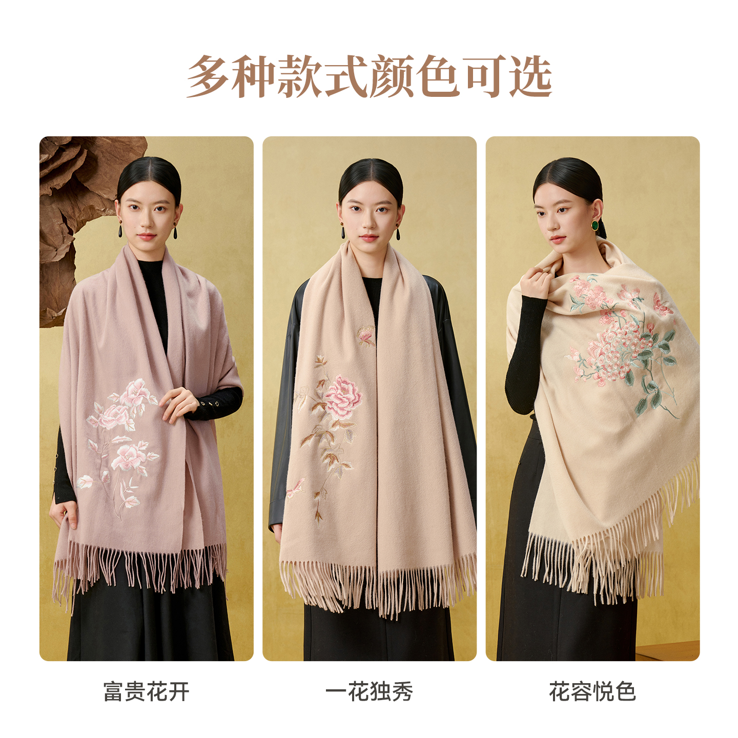 100%绵羊毛 刺绣披肩 精美礼盒装