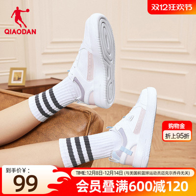 乔丹板鞋新款小白鞋休闲鞋撞色运动鞋女皮面粉色增高学生正品鞋