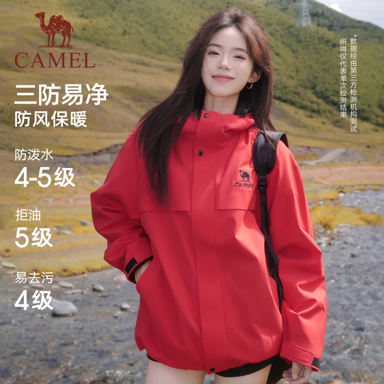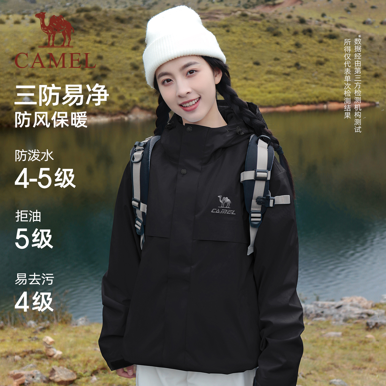 骆驼全地形夹克外套女款男款冬季加绒户外防风防泼水远山蓝登山服