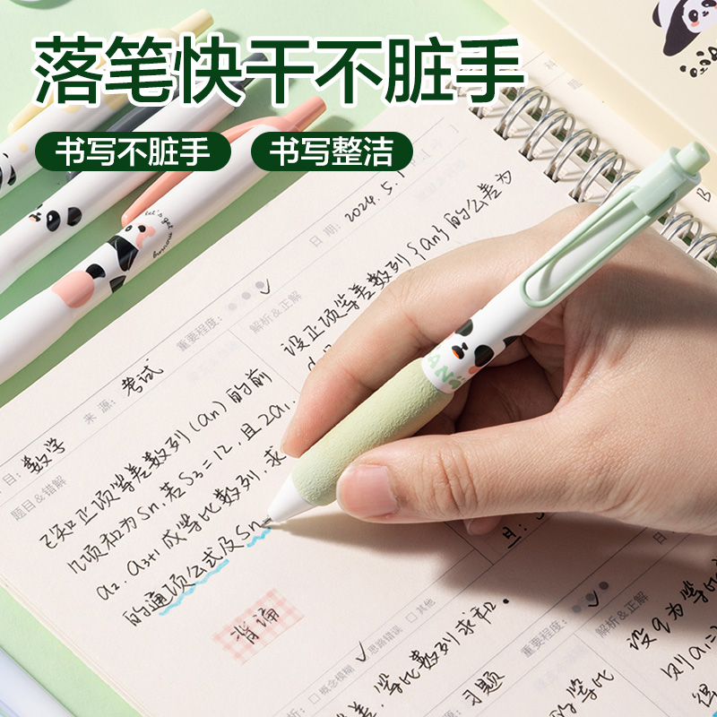 【2件7折】得力熊猫胖达中性笔学生0.5速干st笔头高颜值可爱水笔学生书写刷题备考考试用学生礼物中性笔礼盒