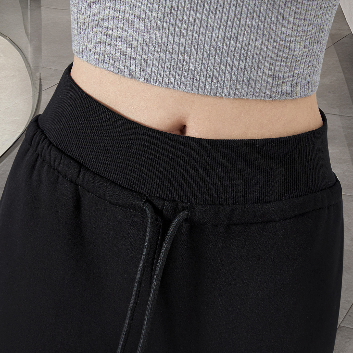 她池高腰休闲裤2025秋装新款女装通勤简约抽绳松紧腰长款阔腿裤