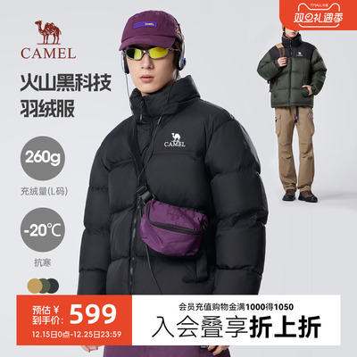骆驼火山羽绒服男冬季2025新款反季加厚棉服连帽面包服短款外套女
