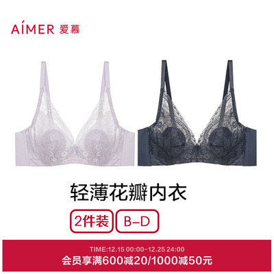 【2件包】爱慕内衣女无钢圈小胸聚拢/花瓣内衣大胸显小文胸