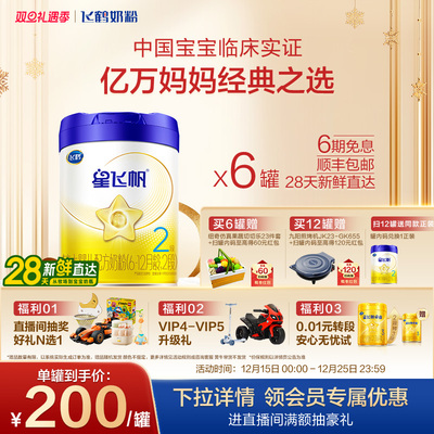 【官方正品】飞鹤星飞帆2段婴幼儿配方牛奶粉700g*6罐5HMO专利OPO