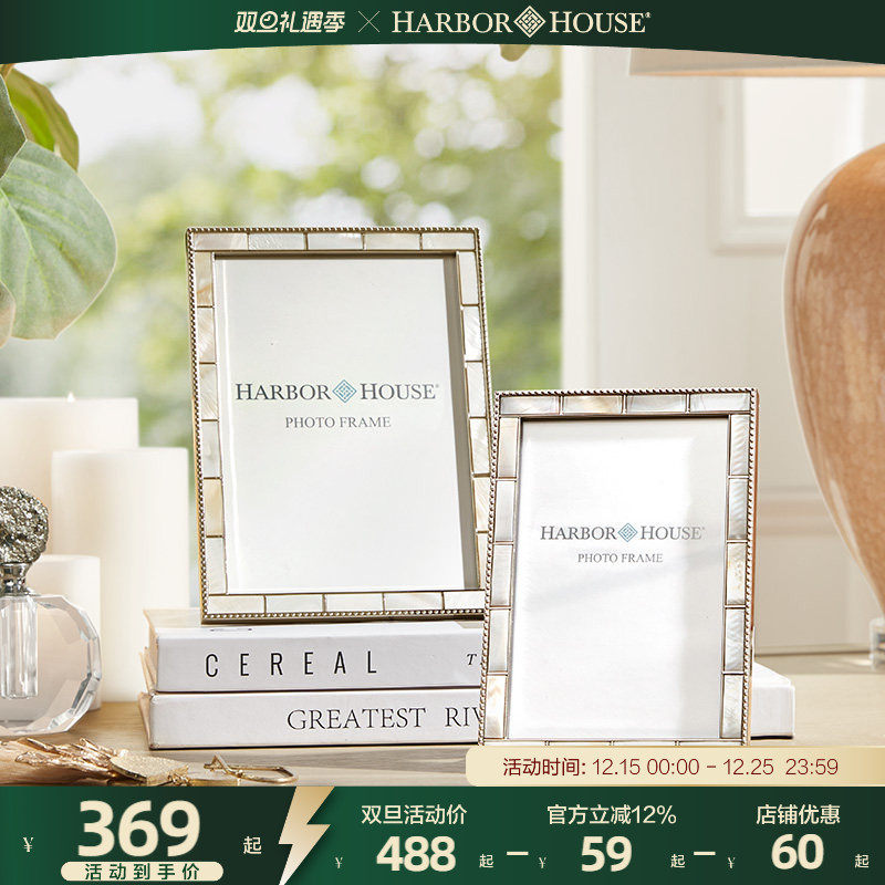 HarborHouse美式家居金属摆台高级感照片贝母珠边相框Bella