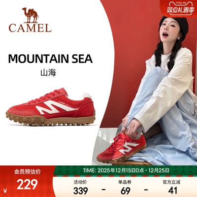 骆驼山海运动鞋女士薄底德训鞋新款鞋子红色女鞋复古男士休闲板鞋