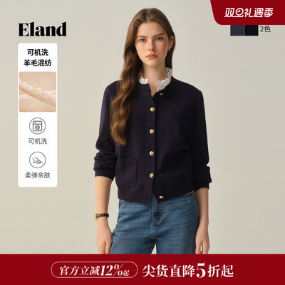 【可机洗羊毛】Eland衣恋毛针织衫女开衫单排扣外套2025冬季新款