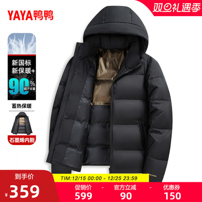 鸭鸭男士羽绒服2025年冬新品时尚休闲纯色短款连帽加厚保暖外套Y