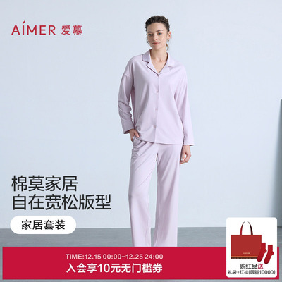 爱慕睡衣女薄款棉质柔软翻领开衫长袖分身家居服套装高级感25新款