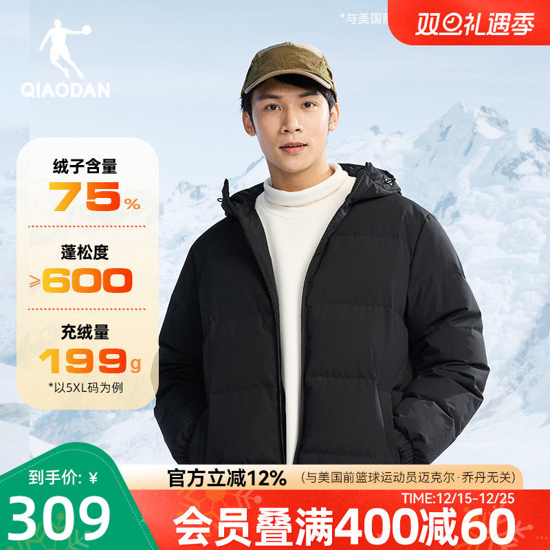 乔丹羽绒服男士冬季新款防寒加厚保暖防风防泼水连帽短款外套上衣