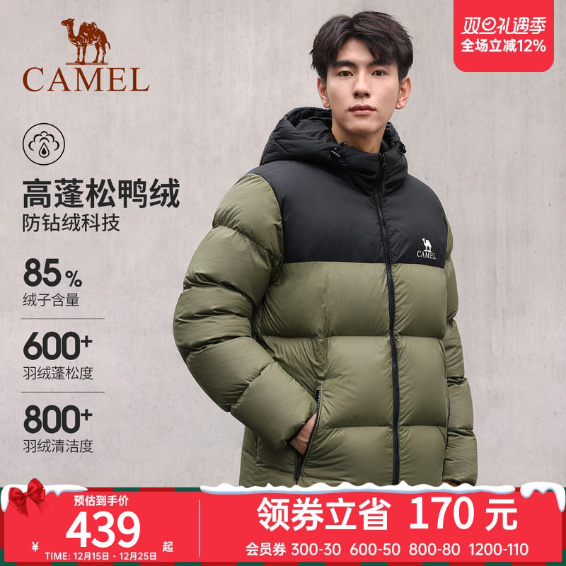 骆驼火山男装面包服男冬季连帽加厚保暖白鸭绒短款羽绒服外套