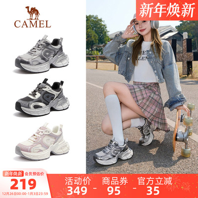 骆驼星宇老爹鞋女鞋2025秋季新款厚底复古银色运动鞋女百搭休闲鞋