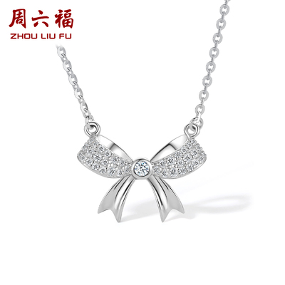周六福S925银项链蝴蝶结吊坠百搭锁骨链跨年礼物送女友