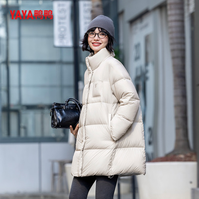 YAYA鸭鸭2025冬新款羽绒服女士小个子中长款立领百搭加厚保暖外套