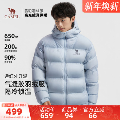骆驼黑钻5 男装羽绒服防风拒水面包防寒服时尚连帽短款外套秋冬男