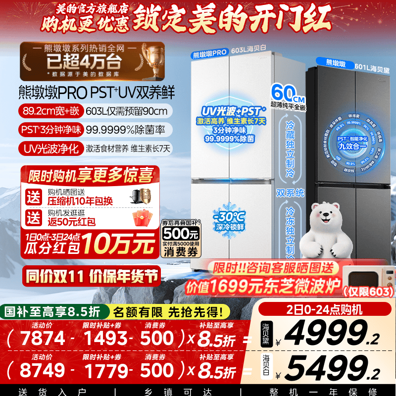 美的熊墩墩pro603/601冰箱双系统零嵌入式十字双开多门家用大容量