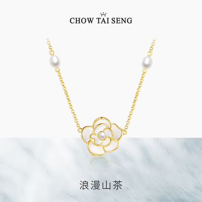 周大生山茶花珍珠项链925纯银小香风锁骨链女首饰生日礼物送女友