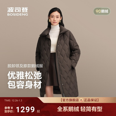 波司登90鹅绒2025秋季新款女士中长款商务羽绒服保暖舒适可拆卸领