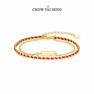 周大生校园爱情系列情窦红绳纯银手链女生编织手绳新年礼物送女生