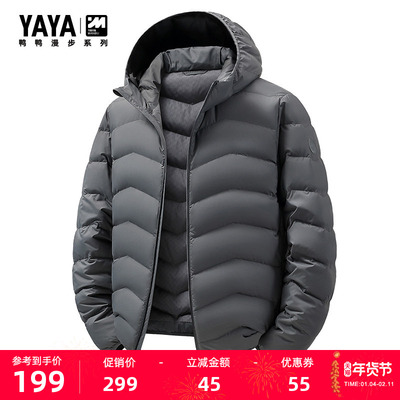鸭鸭羽绒服男士2025冬季新款保暖休闲时尚连帽排骨鸭绒保暖外套M